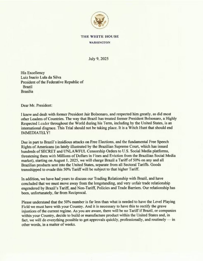 < A Embaixada dos Estados Unidos no Brasil emitiu, nesta quarta-feira (9/7), uma nota na qual afirma que tem acompanhado de perto as investigações contra Jair Bolsonaro e também a família dele. A declaração vem após o presidente norte-americano, Donald Trump, defender que o julgamento de Bolsonaro aconteça durante a eleição e acusar uma “caça […]
