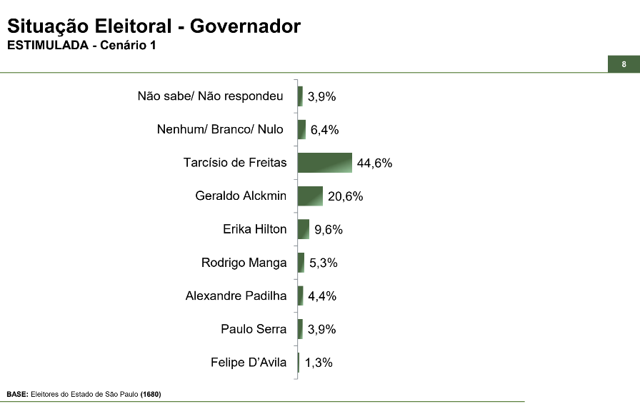 Paraná Pesquisas: Tarcísio lidera com folga cenário para reeleição em SP com mais de 40% das intenções de voto