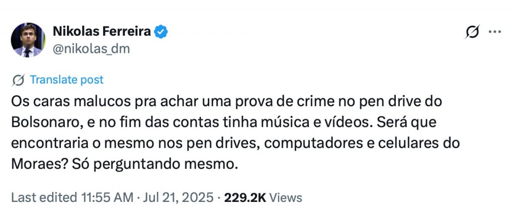 < O ex-presidente Jair Bolsonaro (PL) mostrou, pela primeira vez à imprensa, nesta segunda-feira (21/7), a tornozeleira eletrônica que colocou por ordem do ministro Alexandre de Moraes, do Supremo Tribunal Federal (STF), na última sexta (18/7). O dispositivo está na perna esquerda do ex-mandatário. Bolsonaro também mencionou que confia na lei de Deus. “Não roubei […]