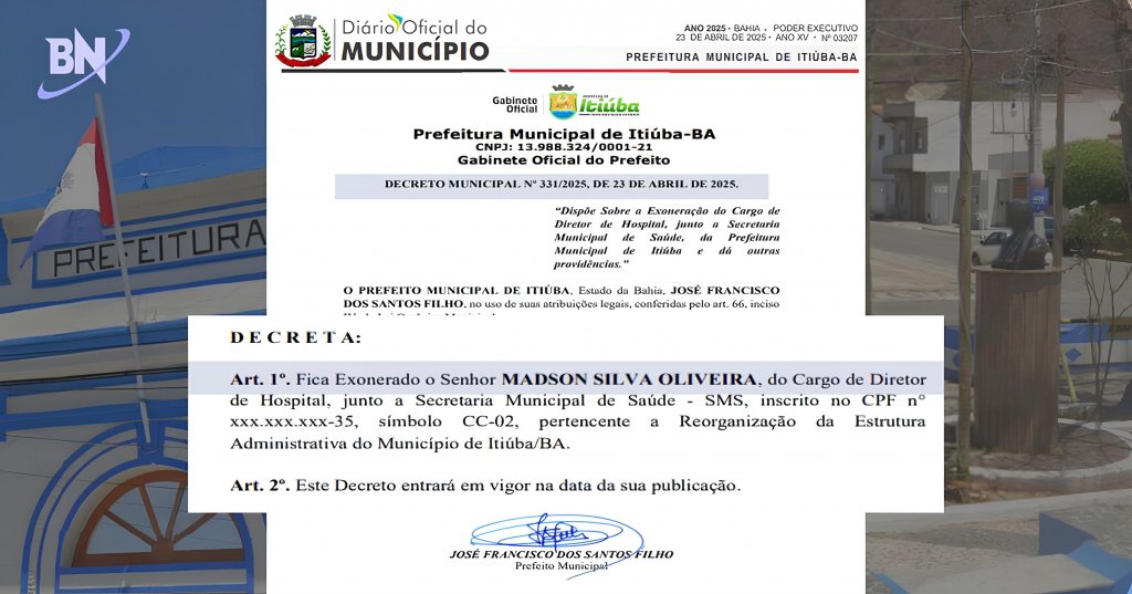 Ex-diretor do Hospital Municipal da Saúde de Itiúba é acusado de continuar ativo mesmo sendo exonerado após ameaçar ex-companheira