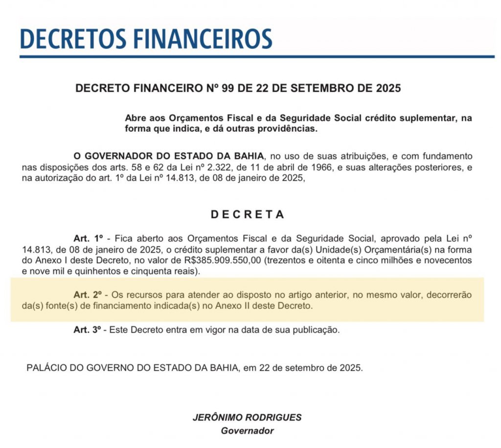 O Governo da Bahia autorizou uma realocação orçamentária de R$ 243,4 milhões que seriam destinados ao programa Bolsa Presença, voltado para a permanência de estudantes na rede de ensino. A verba foi remanejada para custear, entre outras coisas, a construção de novas unidades escolares e o pagamento do abono extraordinário para os profissionais do magistério. […]