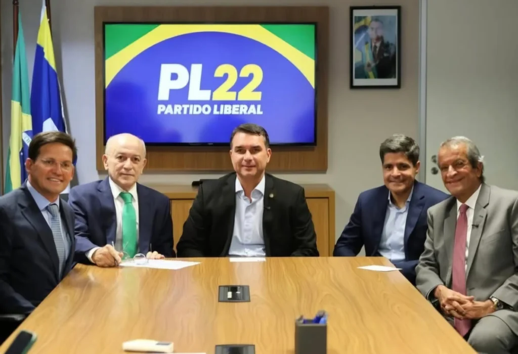 ACM Neto se reuniu na noite desta terça-feira (17) em Brasília com o senador Flávio Bolsonaro. O encontro sinaliza uma possível aproximação entre o ex-prefeito de Salvador e o grupo bolsonarista para as eleições de 2026. Na imagem divulgada, Neto aparece com uma expressão tímida e visivelmente desconfortável. Além de Neto e Flávio, participaram da […]