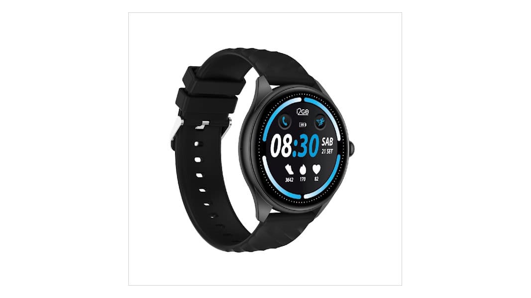 O Track R200, da i2GO, combina certificação IP67 contra poeira e respingos d’água com autonomia de até cinco dias. O relógio reúne 36 funções, entre elas monitoramento de sono, frequência cardíaca e atividades físicas, além de suporte a notificações rápidas do celular.