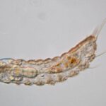 Microscópicos e transparentes, esses animais do filo Gastrotricha vivem entre grãos de areia e partículas de sedimento em ambientes marinhos e de água doce. O corpo dos gastrotríquios é alongado, achatado na região ventral e coberto por cílios que auxiliam na locomoção.