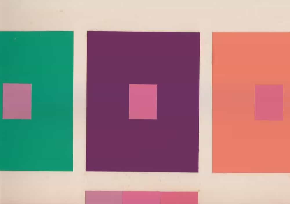 Em fundos diferentes, o quadrado rosa parece ter tonalidades distintas. No entanto, a cor é a mesma.