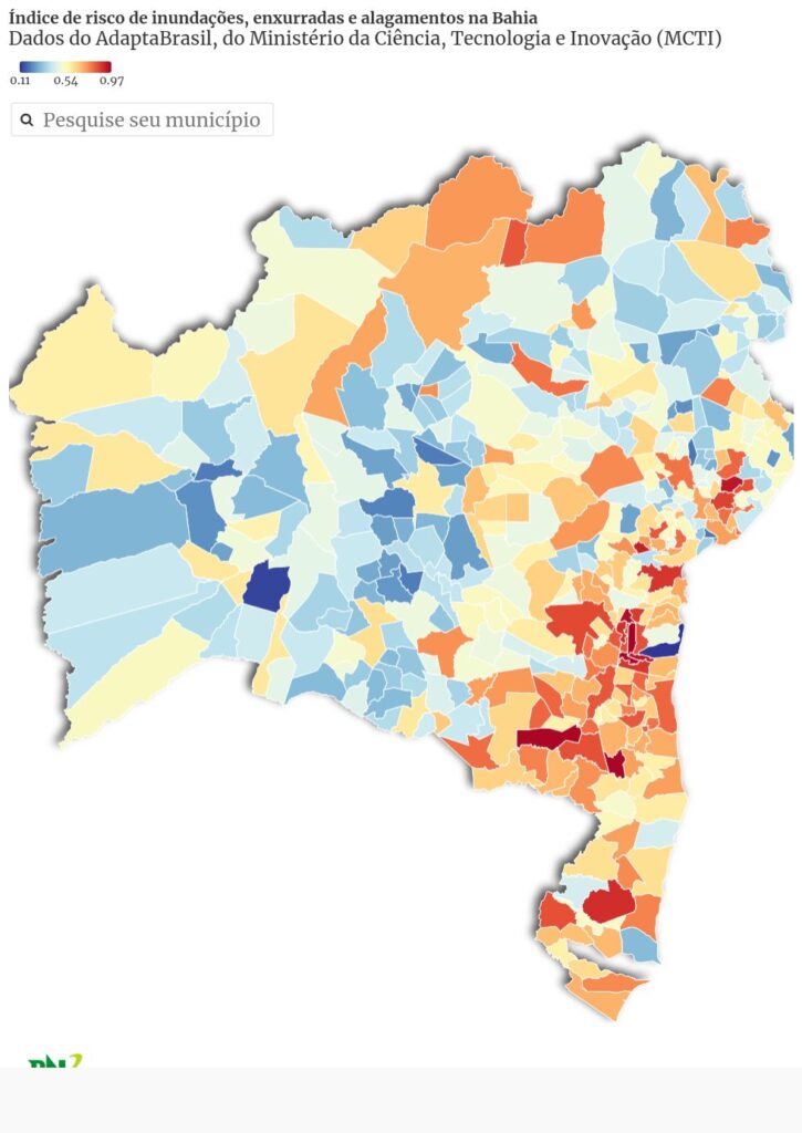 Contudo, o Bahia Notícias observou os 411 planos de governo dos prefeitos eleitos divulgados sobre a gestão dos municípios na Bahia, e somente 168 dos 411 têm alguma menção ou proposta que utilize a ideia de novo planejamento de drenagem, esgotamento e Plano Diretor Urbano com pautas ambientais. Isto é, 40% do total de municípios do estado.
