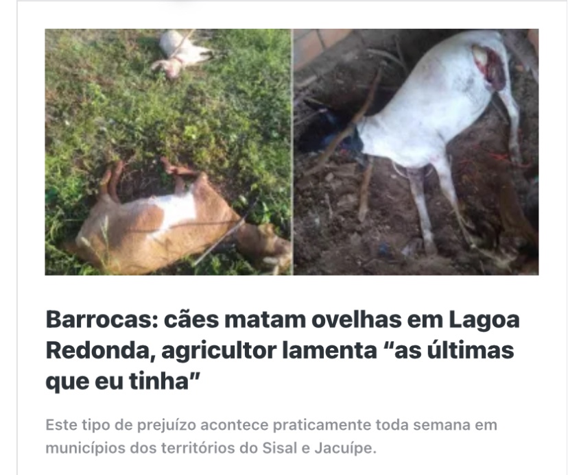 Os constantes ataques de cachorros a rebanhos de caprinos e ovinos no interior da Bahia vêm provocando, há décadas, grandes prejuízos aos agricultores familiares. Em diversas comunidades, as perdas já somam centenas de criações, gerando revolta e mobilização popular.