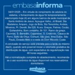 De acordo com a empresa, o serviço está previsto para ser retomado gradualmente, ainda neste sábado, mas a recomendação é de que a população economize a água disponível nos reservatórios.