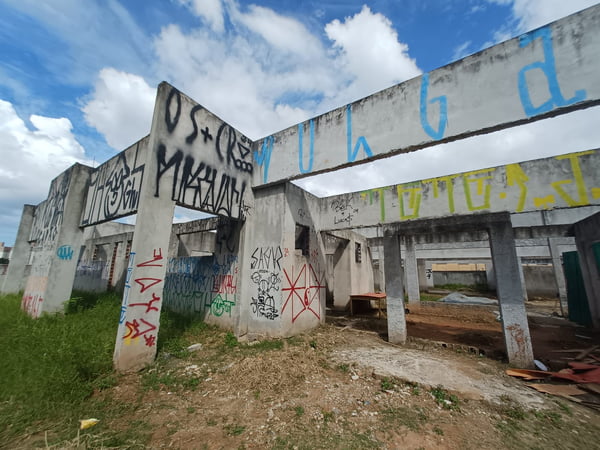O prédio na Vila Veloso, que consta de levantamento de obras paralisadas ou atrasadas do TCE, está todo pichado e mostra os sinais do tempo. A obra, iniciada em 2016, foi paralisada há cerca de três anos, segundo funcionários, que voltaram recentemente ao local, disseram à reportagem.