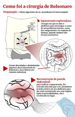 A cirurgia de domingo é mais uma das intervenções médicas às quais Bolsonaro foi submetido após sofrer uma facada em setembro de 2018, durante a campanha presidencial. Desde então, ele já passou por diversos procedimentos relacionados ao sistema digestivo.