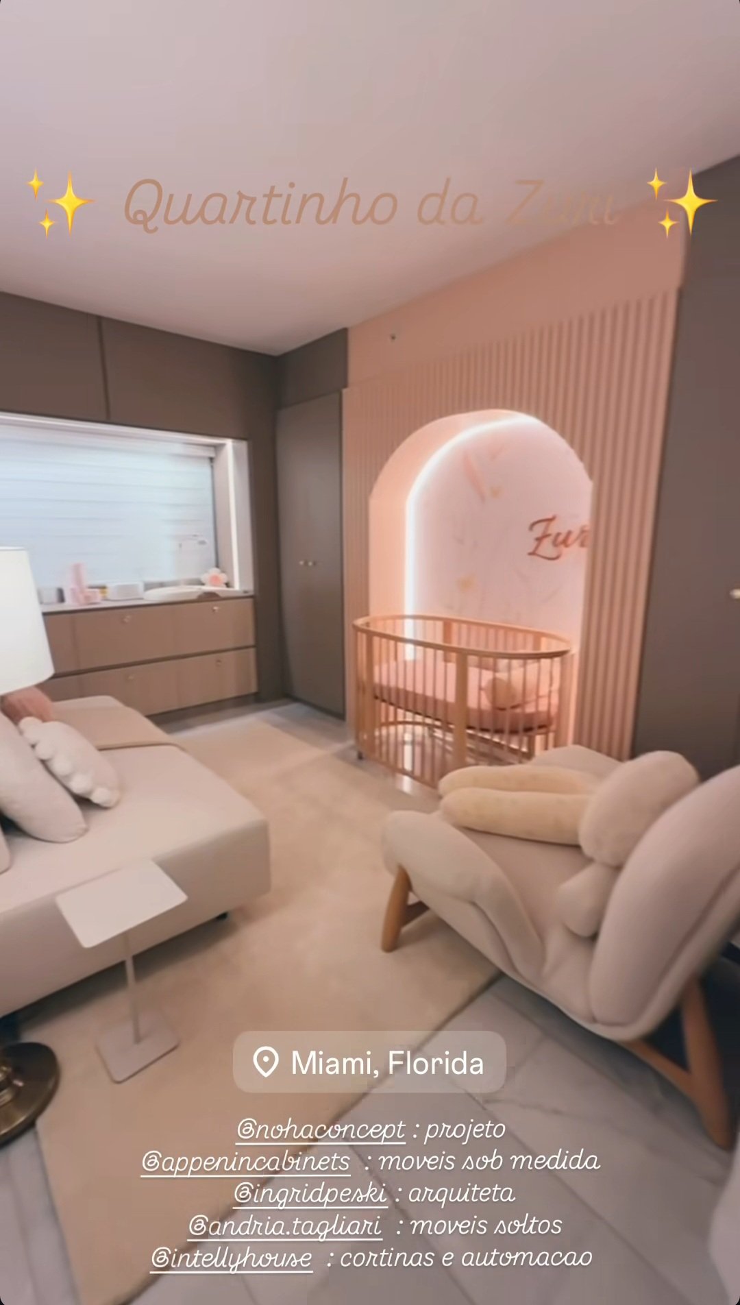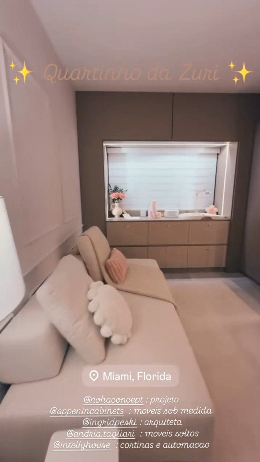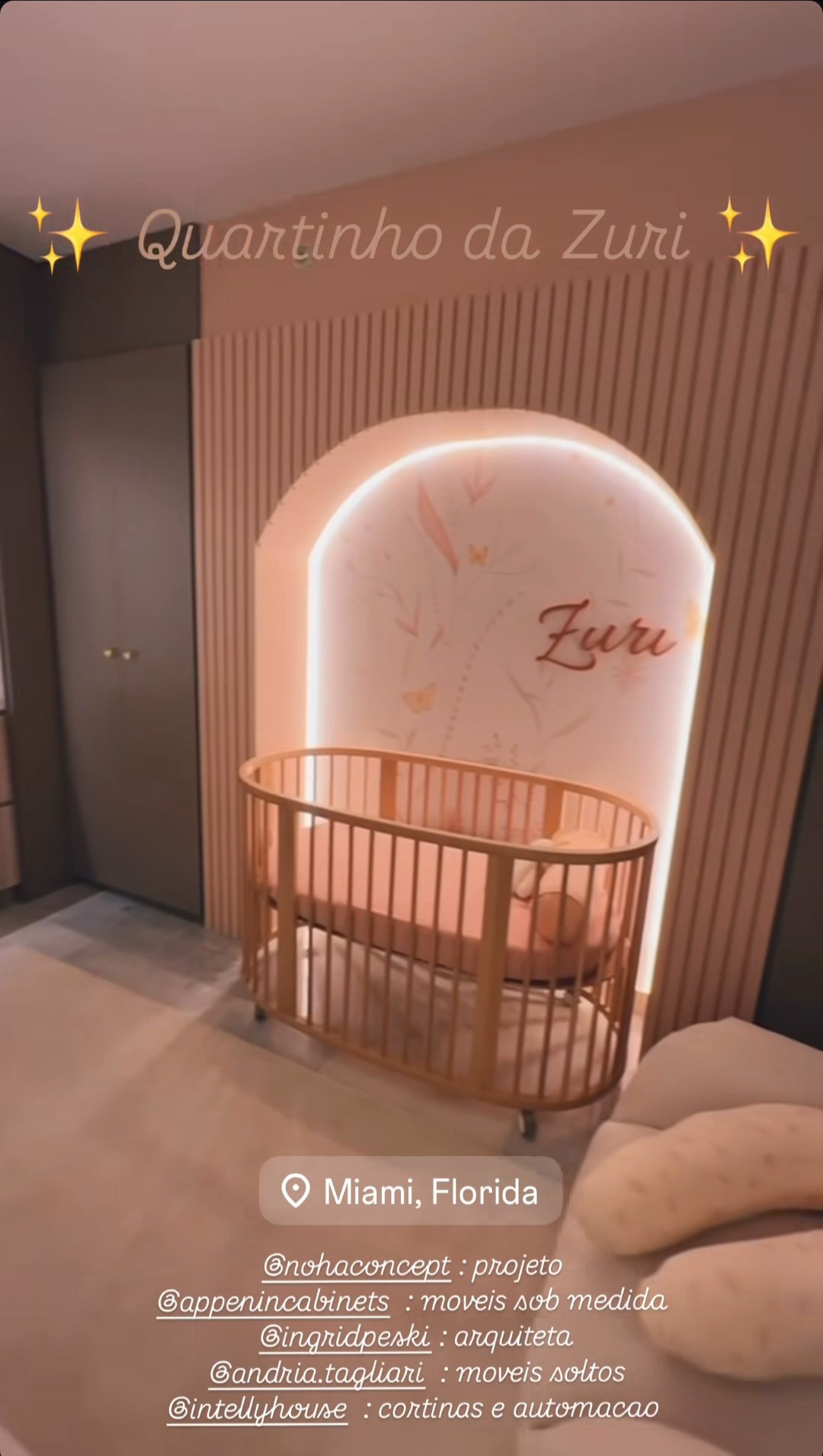Assim como o nascimento da primeira filha do casal, o quarto para Zuri foi montado em Miami, no Estados Unidos, por profissionais especializados em trabalhos para brasileiros em solo norte-americano.