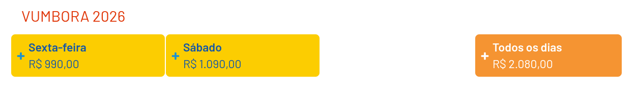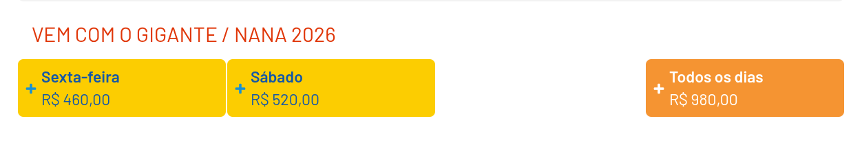 A lista também conta com o Vem Com o Gigante, de Léo Santana, que custa no dia mais barato R$ 460.
