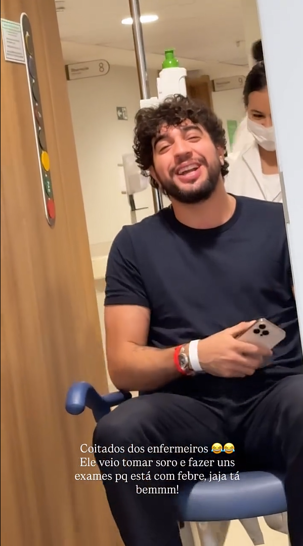 O cantor passa bem, mas precisou tomar soro e fazer exames. “Cuidando do meu bichinho”, postou a namorada