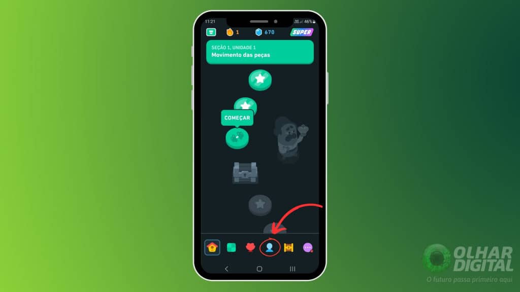 - Acesse seu aplicativo do Duolingo e toque no ícone de Perfil.