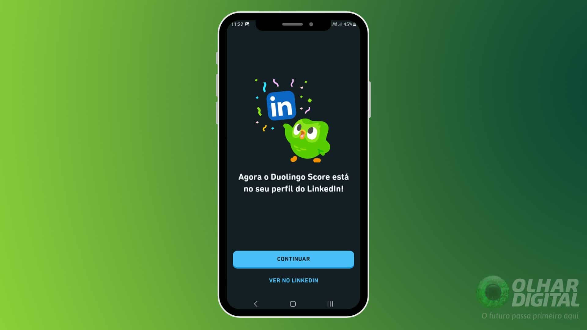 - Pronto! Agora, sua pontuação no Duolingo já pode ser vista no LinkedIn.
