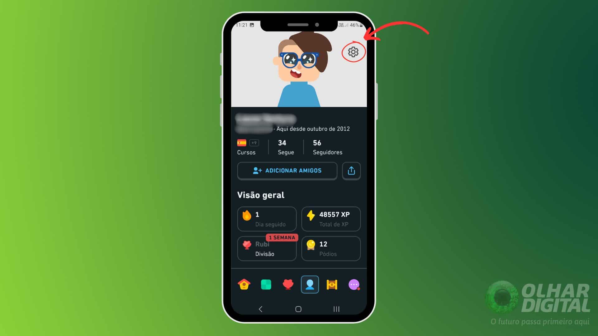 - Abra o aplicativo Duolingo. Depois, clique no ícone de perfil.