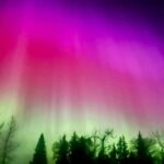 A aurora boreal é um fenômeno óptico causado pela interação entre partículas carregadas do vento solar e os gases presentes na atmosfera terrestre. Apesar dessas luzes quase sempre trazerem tons de verde, elas também podem exibir cores como vermelho, azul, violeta e rosa.