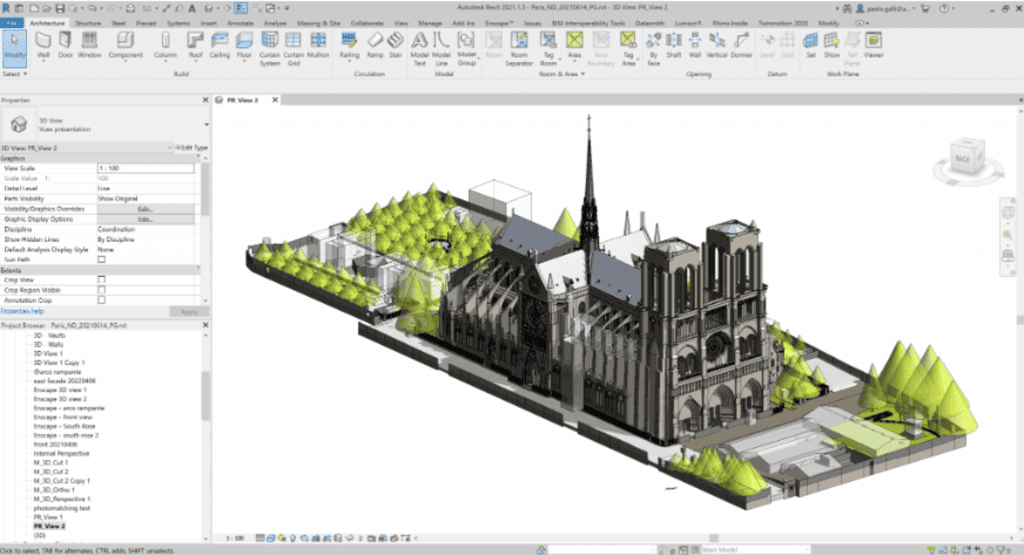 Foi preciso um ano para criar um modelo digital em escala real, exigindo 12 scanners e uma equipe de sete engenheiros. “É um exemplo inigualável de modelagem histórica usando a tecnologia Building Information Modeling (BIM)”, segundo o site da empresa.