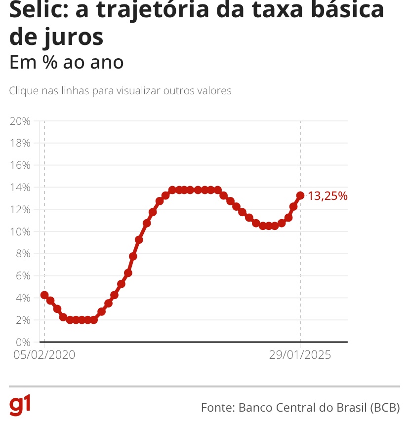 ➡️ A projeção é de novos aumentos nos próximos meses, com taxa superando 15% ao ano em meados de 2025, maior nível em quase 20 anos.