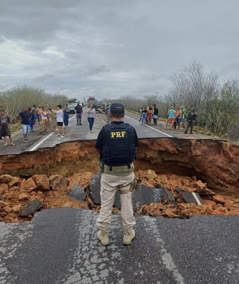 Equipes da Polícia Rodoviária Federal (PRF) e do DNIT já estão no local realizando a avaliação inicial dos danos e adotando as primeiras medidas de contenção. Até o momento, não há previsão de liberação da rodovia, sendo necessário aguardar a estabilização do solo e o início dos reparos estruturais.