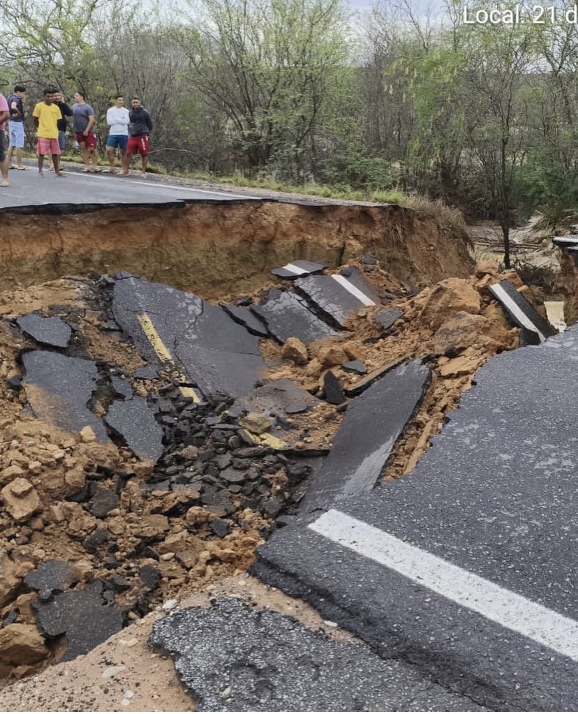 Uma grande cratera se abriu na BR-116 Sul, no distrito de Tracupá, em Tucano, após fortes chuvas. Trânsito está interrompido e equipes trabalham no local.