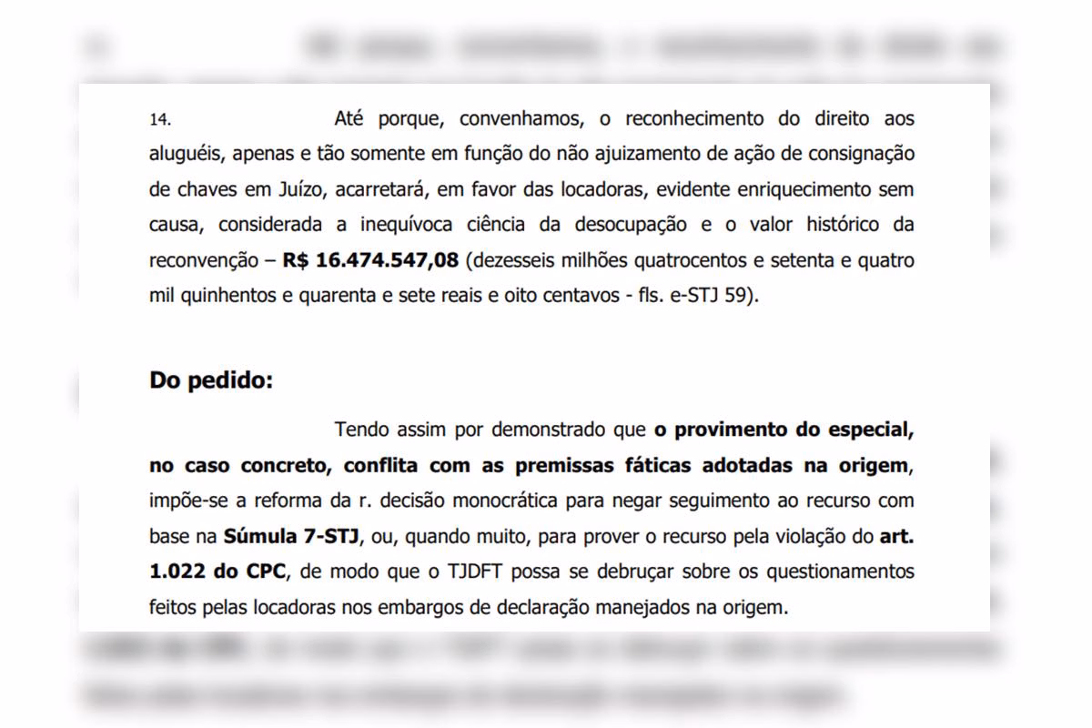 As empresas recorreram ao Superior Tribunal de Justiça (STJ). Por meio de uma decisão monocrática, em agosto de 2022, o relator do recurso especial, ministro Raul Araújo, atendeu parcialmente aos pedidos das empresas para derrubar a decisão do TJDFT e reconhecer a incidência de aluguéis até 2019.