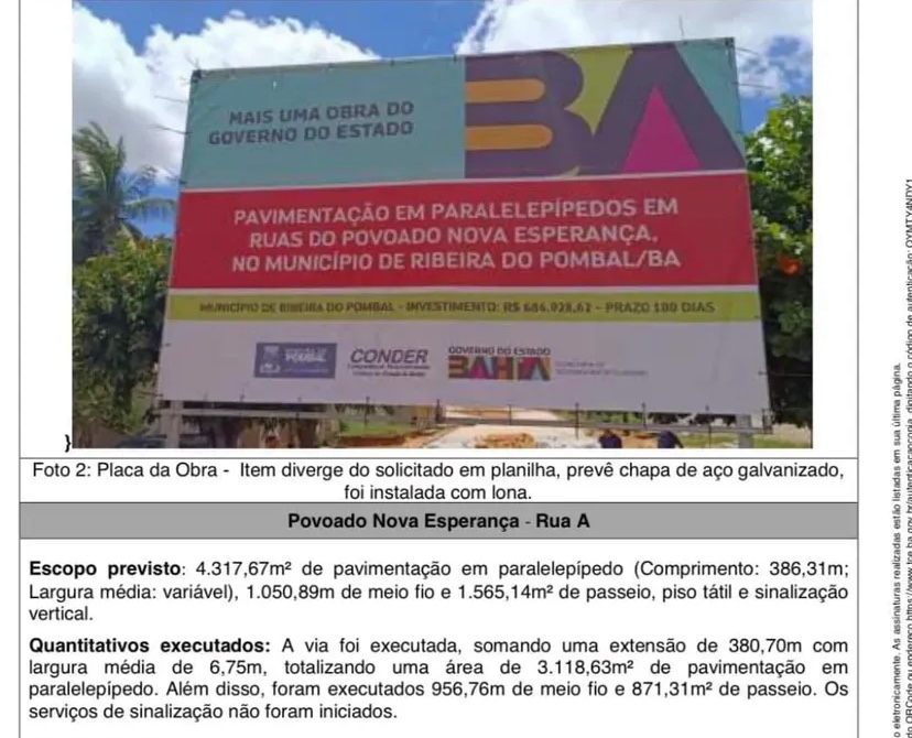 De acordo com despachos públicos anexados nos autos, as obras apresentam indícios de falhas na execução e problemas na prestação de contas dos recursos públicos utilizados. O objetivo da apuração é esclarecer se houve má gestão dos recursos ou, em uma hipótese mais grave, desvio de verbas públicas.