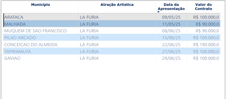 - A banda La Fúria aparece com sete shows no São João, sendo dois feitos em maio, que foram retirados da conta. O grupo de pagode receberá de R$ 90 mil a R$ 190 mil pelas apresentações. A banda irá receber R$ 580.000,00 pelas apresentações.