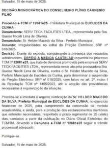 TCM-BA suspende licitação da Prefeitura de Euclides da Cunha após denúncia de empresa participante Leia mais »