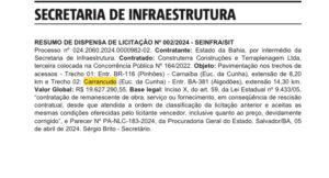 EUCLIDES DA CUNHA: Deputado Federal Gabriel Nunes divulga que governo do estado já publicou contratação de nova empresa para asfalto Carrancudo-Algodões. Leia mais »