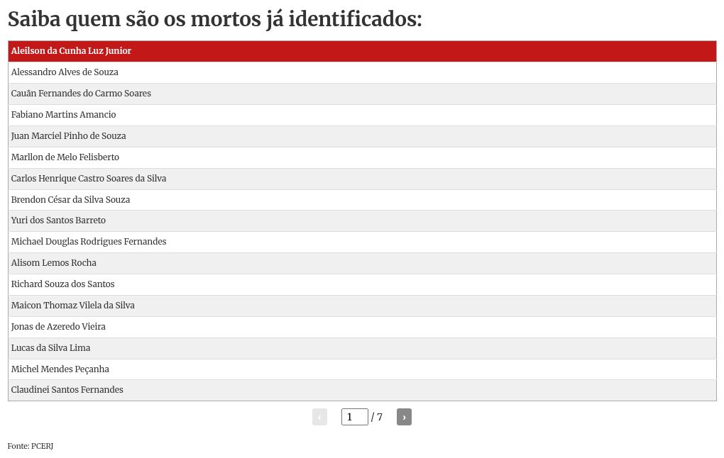 Após mais de 48 horas de andamento da força-tarefa para identificar os corpos, autoridades da Segurança Pública se juntaram em coletiva de imprensa, nessa sexta-feira (31/10), para detalhar as identidades dos mortos.