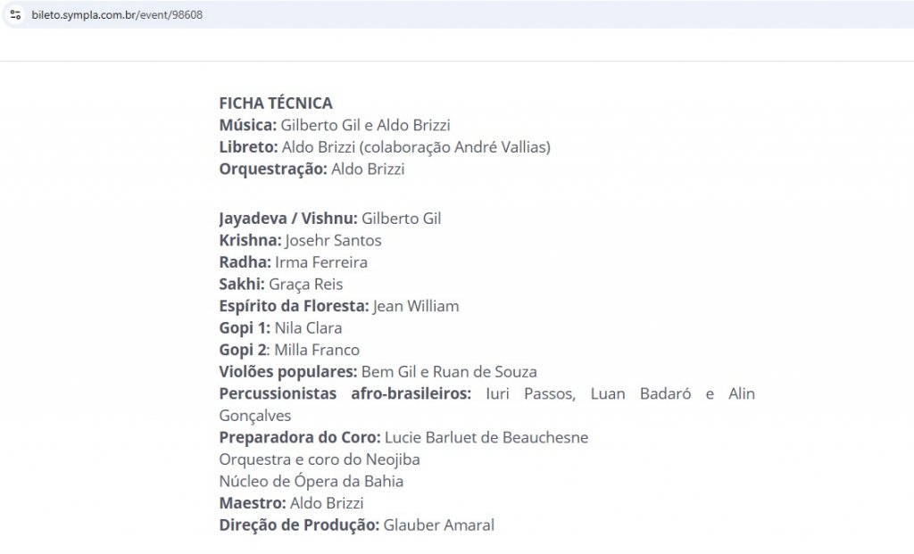 No material de divulgação do espetáculo enviado pela assessoria de imprensa, Brizzi cita o designer tropicalista, Rogério Duarte, como a pessoa quem apresentou o poema a Gil, enquanto o baiano afirma que foi parceiro de Duarte por anos. O tropicalista, no entanto, não é citado na ficha técnica do espetáculo. “Rogério, Aldo e eu fomos colaboradores durante muitos anos, e Rogério também um adepto da cultura indiana e Hare Krishna”.