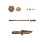 Várias armas também foram encontradas, sendo uma adaga do século XV a mais impressionante. Ela foi localizada com a lâmina de ferro quebrada e significativamente lascada, mas com o punho de madeira feito de bétula encaracolada em boas condições.