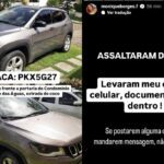 O humorista Dum Ice foi vítima de um assalto em frente à portaria do Condomínio Encontro das Águas, localizado na Estrada do Coco, na Região Metropolitana de Salvador. O crime ocorreu na noite desta terça-feira (7), enquanto Dum dirigia um veículo Jeep Compass, que, segundo relatos, pertence à namorada dele, Monique Borges.