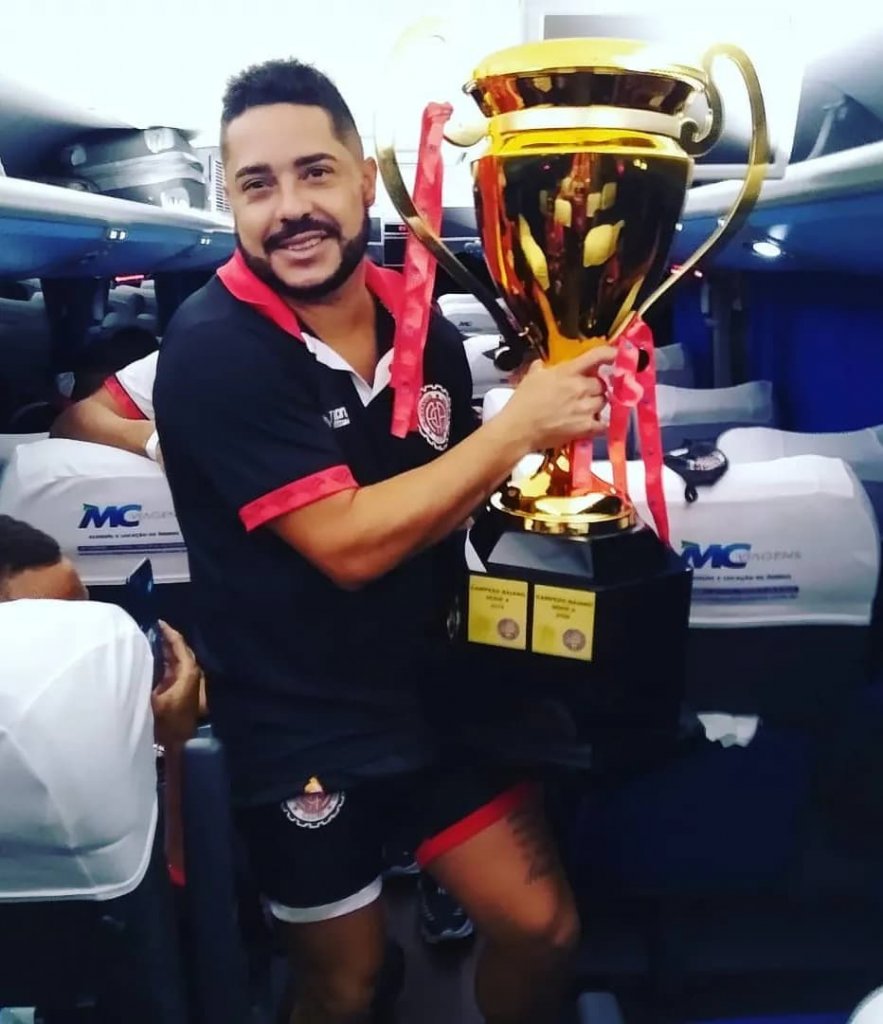 Robert erguendo a taça do Campeonato Baiano pelo Atlético de Alagoinhas | Foto: Divulgação/Atlético de Alagoinhas