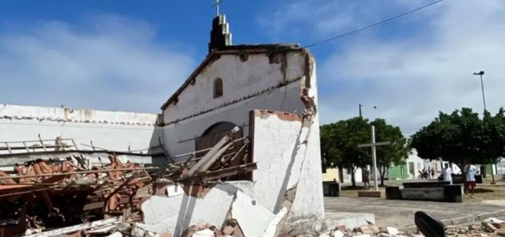 Capela de Nossa Senhora de Fátima, no povoado de Tapera, caiu na manhã deste sábado (23); ninguém ficou ferido