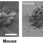 Já quando inseridos em gotículas, os embriões parecem “puxar” as fibras de colágeno dos tecidos maternos em direção ao seu centro, remodelando o ambiente ao redor.