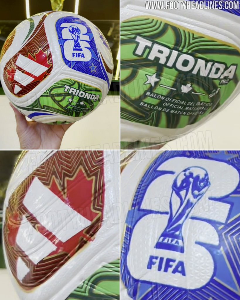 A bola oficial da Copa do Mundo de 2026 já tem identidade definida. Batizada de “Trionda”, ela será apresentada oficialmente pela adidas em outubro deste ano. As imagens e a informação do modelo foram vazadas pelo portal especializado Footy Headlines. Veja abaixo: