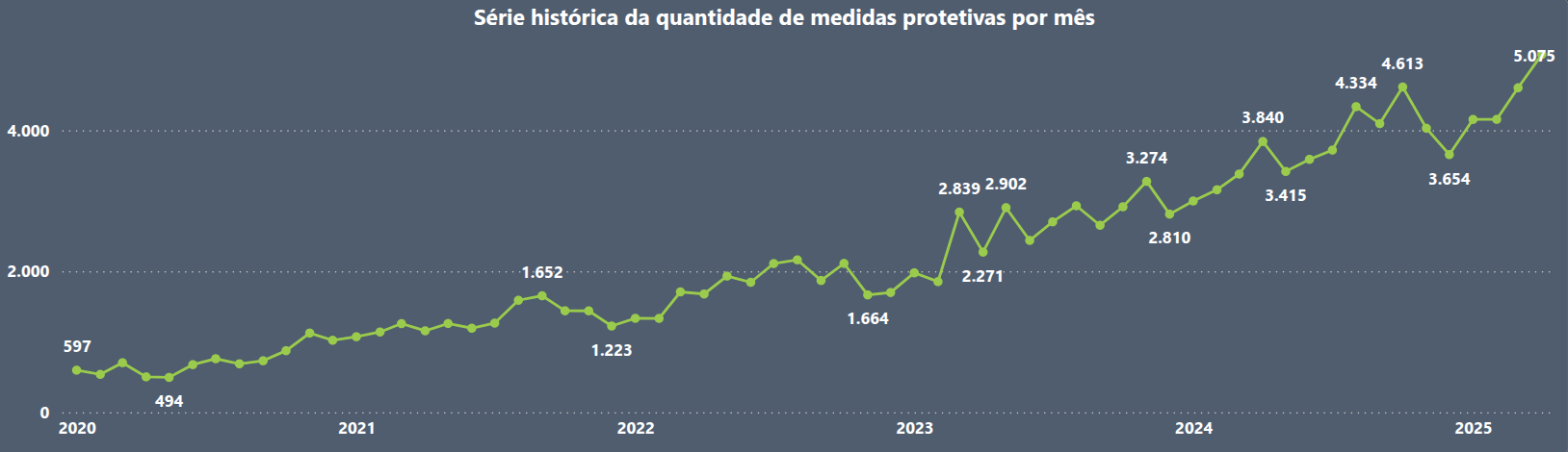 Somente em abril de 2025, o TJ-BA concedeu 5.075 medidas protetivas, o maior número mensal registrado desde o início da série histórica em 2020. O número é 98,99% superior ao de abril daquele ano, quando foram registradas 502 medidas. Para efeito de comparação, o total de medidas protetivas concedidas em todo o ano de 2020 foi de 8.700, número que já foi superado em mais de 106% nos primeiros quatro meses de 2025.