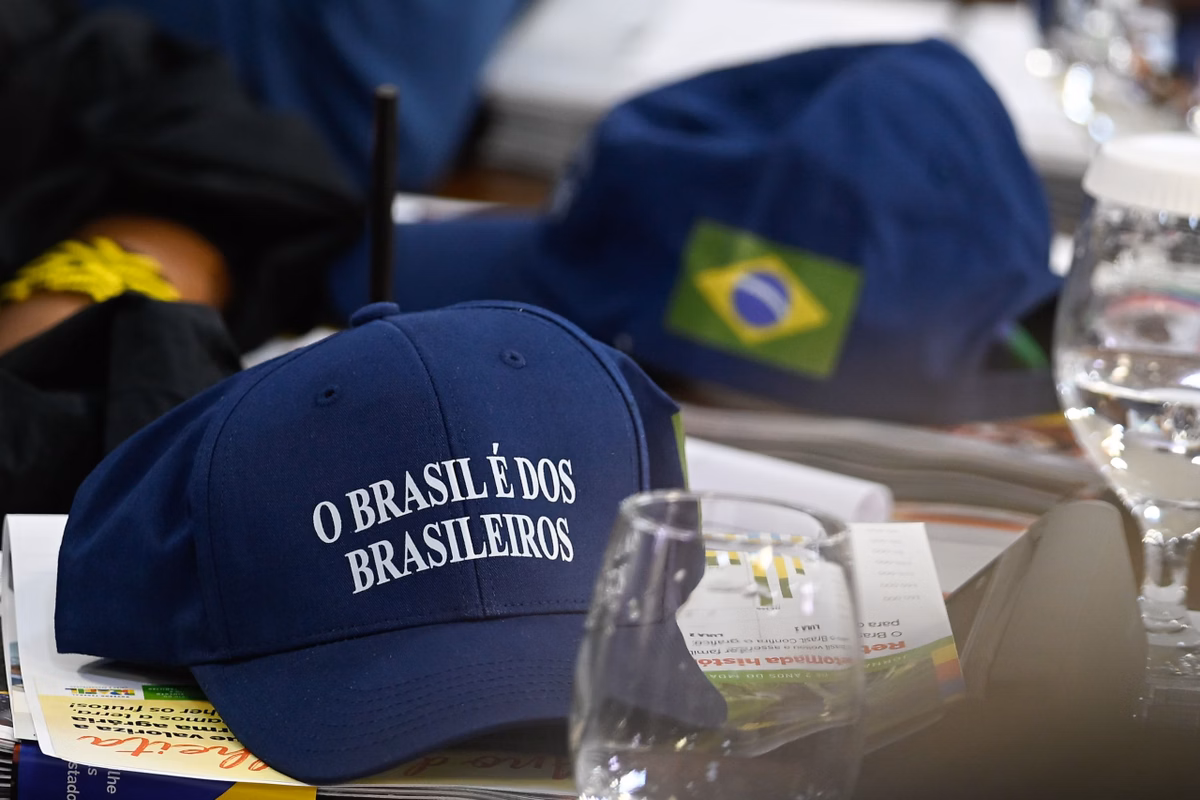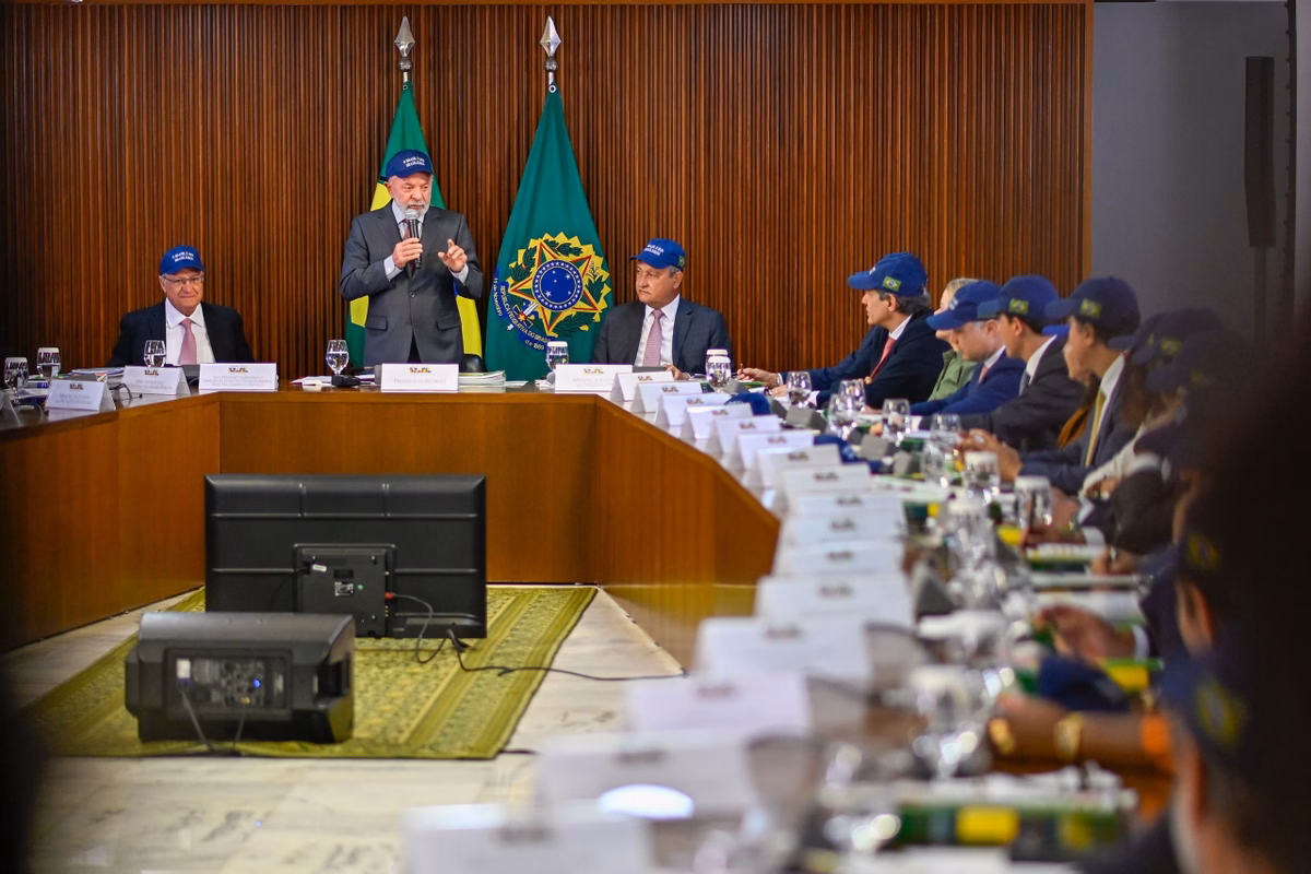 O presidente Luiz Inácio Lula da Silva (PT) se reuniu, na manhã desta terça-feira (26/8), com a equipe de ministros para fazer balanço da gestão e projetar ações para 2026, ano eleitoral. A maioria dos ministros usa boné azul, com a frase “O Brasil é dos brasileiros”.