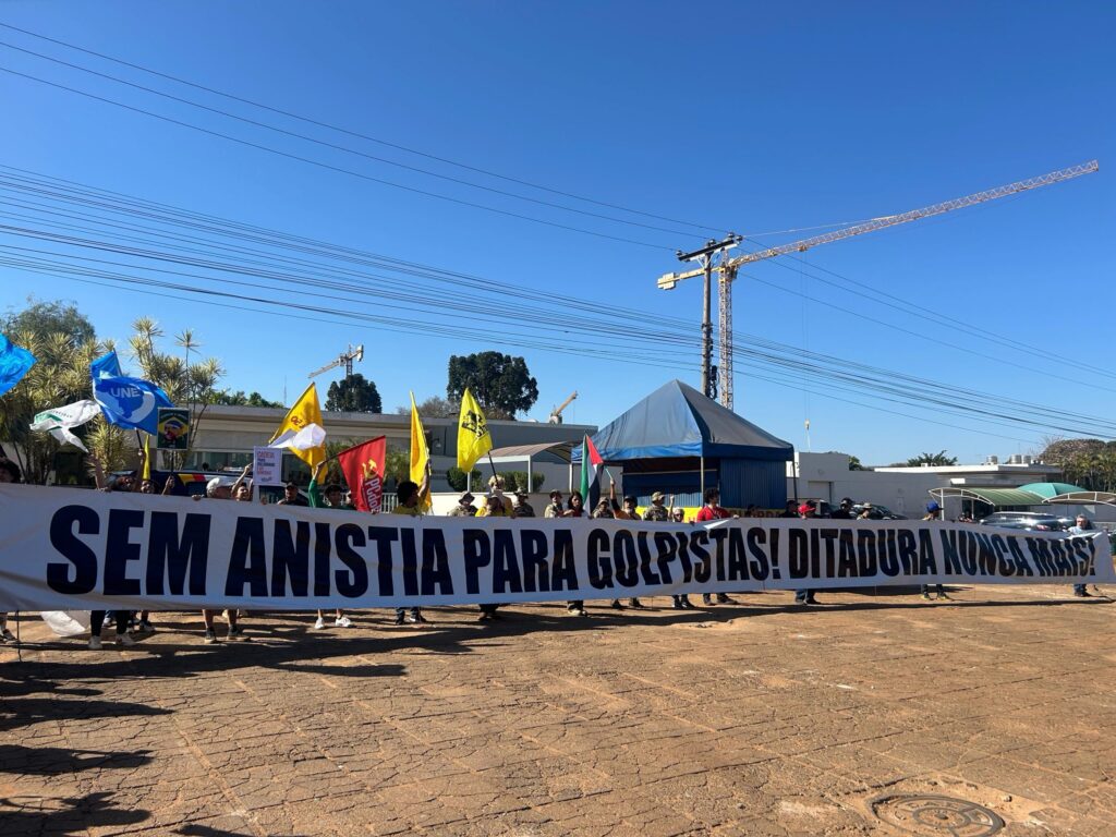 “Estamos juntos lutando pela democracia brasileira, contra anistia, que já foi julgada pelo Supremo, de forma adequada, respeitando o Estado Democrático de Direito e todo o processo legal. A gente não aceita que ela seja ressuscitada a qualquer custo”, afirmou Daniela.