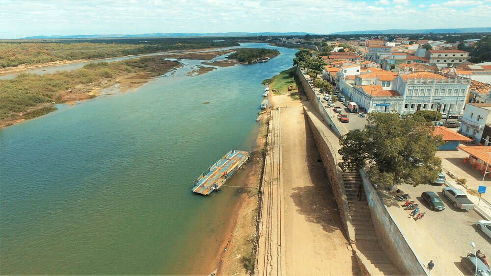 Imagem aérea do Município de Barra, às margens do Rio São Francisco. Foto: Reprodução / CBHSF