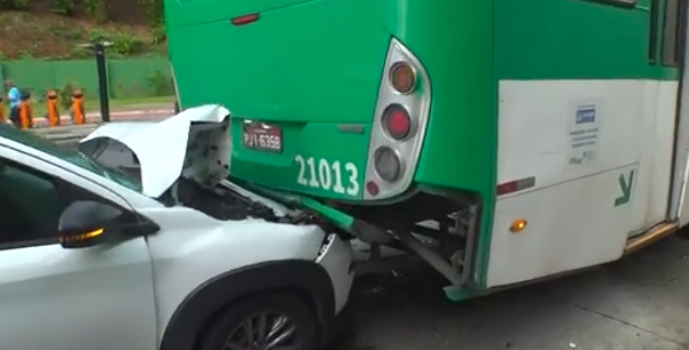 Um motorista perdeu o controle da direção e bateu o carro em um ônibus no início da manhã desta terça-feira (20), no bairro de Ondina, em Salvador. O caso foi registrado na Avenida Oceânica, no sentido Farol da Barra, na altura do monumento Avião de Caça da Força Aérea Brasileira (FAB).