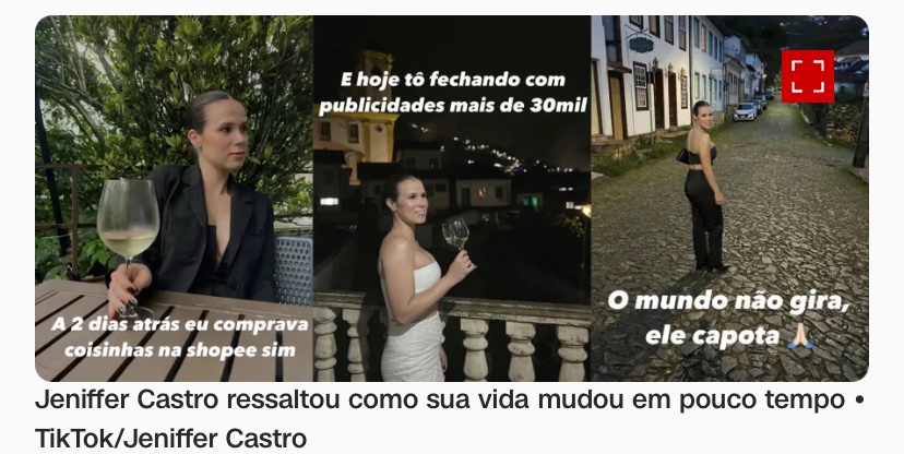 Em um vídeo publicado em seu TikTok no domingo (8), ela contou como sua vida mudou em pouco tempo. “Há dois dias atrás eu comprava coisinhas na Shopee e hoje estou fechado com publicidades de mais de R$ 30 mil”, escreveu.