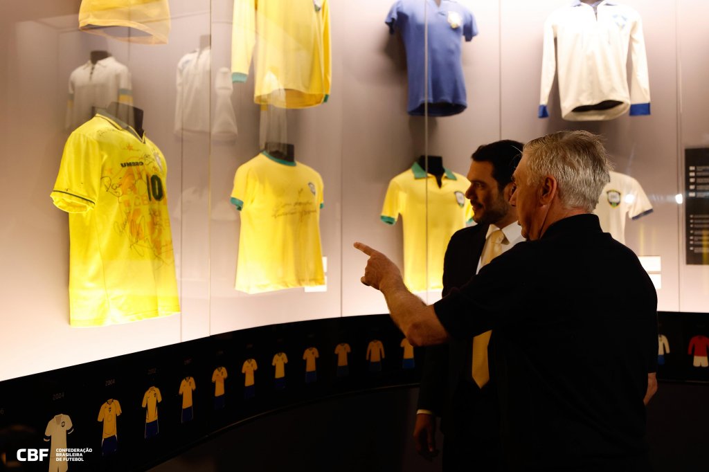 Durante a visita, o treinador percorreu os principais espaços da sede, incluindo o salão onde estão expostas as camisas históricas da Seleção Brasileira e as estátuas de Pelé e Marta, eternizados como Rei e Rainha do Futebol. Em outro espaço, contemplou os cinco troféus da Copa do Mundo e a estátua de Zagallo, o único tetracampeão mundial da história — com títulos como jogador (1958 e 1962), treinador (1970) e coordenador técnico (1994).