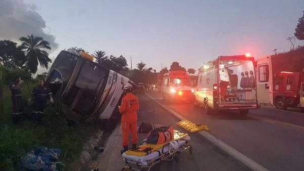 Um ônibus de viagem tombou na madrugada desta segunda-feira (23), na BR-116, na altura da cidade de Irajuba, no centro-sul da Bahia. O acidente deixou ao menos oito pessoas feridas, sendo uma em estado grave, segundo informações da Polícia Rodoviária Federal (PRF).