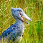 Conhecida cientificamente como Balaeniceps rex, a cegonha-bico-de-sapato é nativa das áreas pantanosas da África Oriental. O nome popular vem do formato inconfundível do seu bico, que lembra um sapato. Com cerca de 1,5 metro de altura e envergadura que pode chegar a 2,6 metros, a ave se destaca tanto pelo tamanho quanto pelas características físicas pouco usuais.