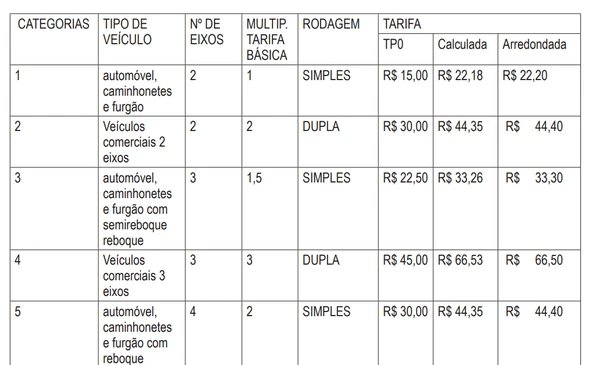O aumento foi oficializado e publicado no Diário Oficial do Estado (DOE) também nesta sexta-feira. Com a alteração, a tarifa básica para veículos de passeio, que antes era de R$ 21,05, agora custa R$ 22,17.