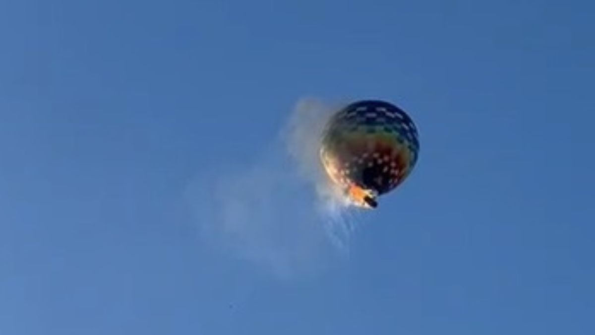 Imagens que circulam nas redes sociais registram o momento dramático em que o balão pega fogo e passageiros tentam escapar pulando