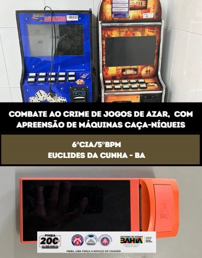 Na manhã desta sexta-feira (15/08), a Polícia Militar da Bahia, por meio do 5º Batalhão/6ª Companhia de Emprego Tático Operacional (CETO), realizou a apreensão de máquinas caça-níqueis em um estabelecimento comercial localizado na Rua Dom Pedro II, no Centro de Euclides da Cunha.